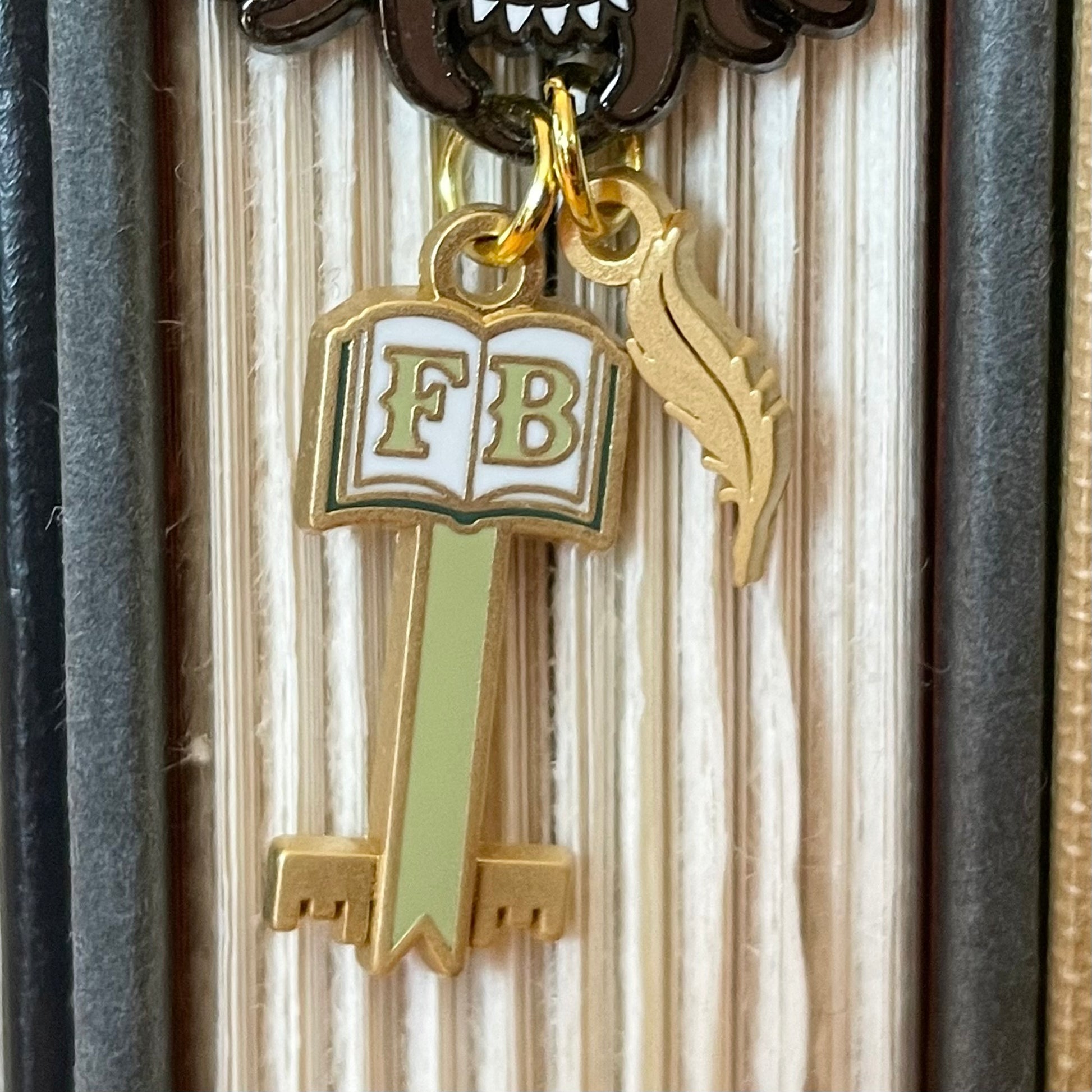 This tiny key features a dangerous volume who will protect your keys at all cost as well as a handy quill and whimsical key.