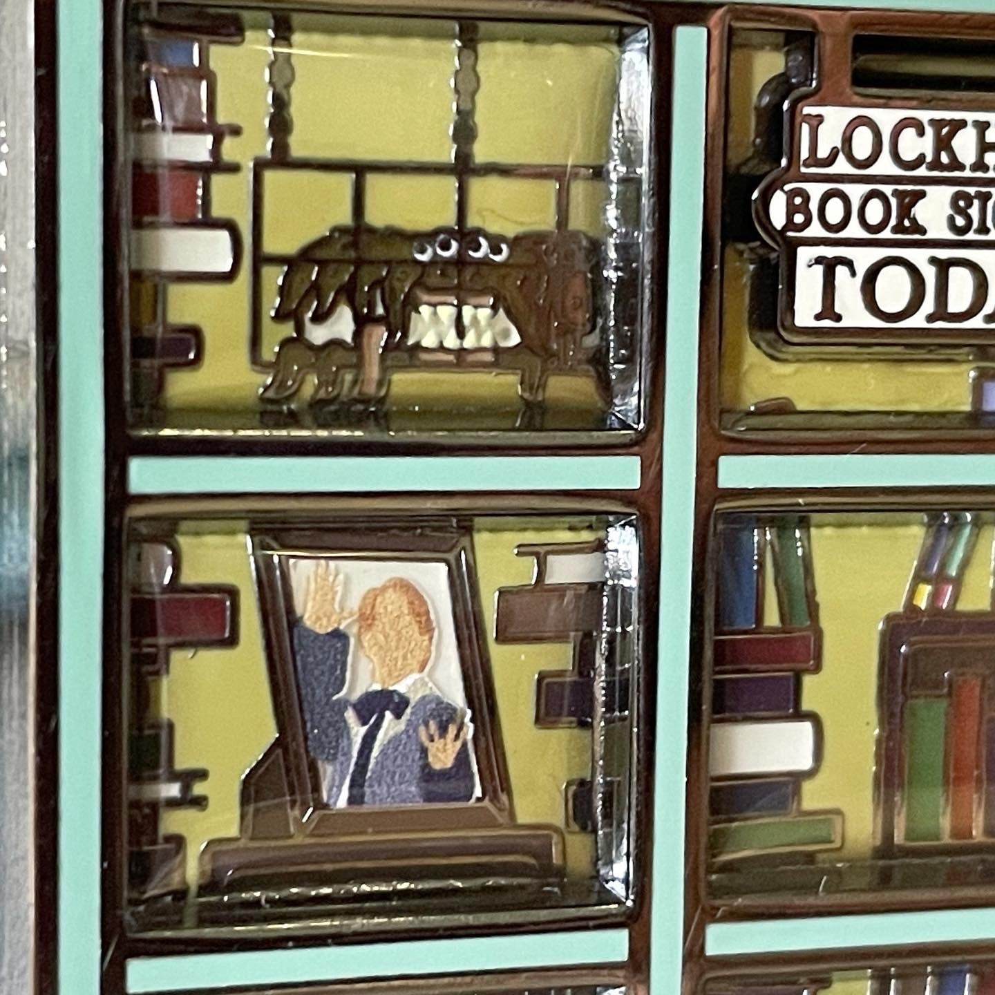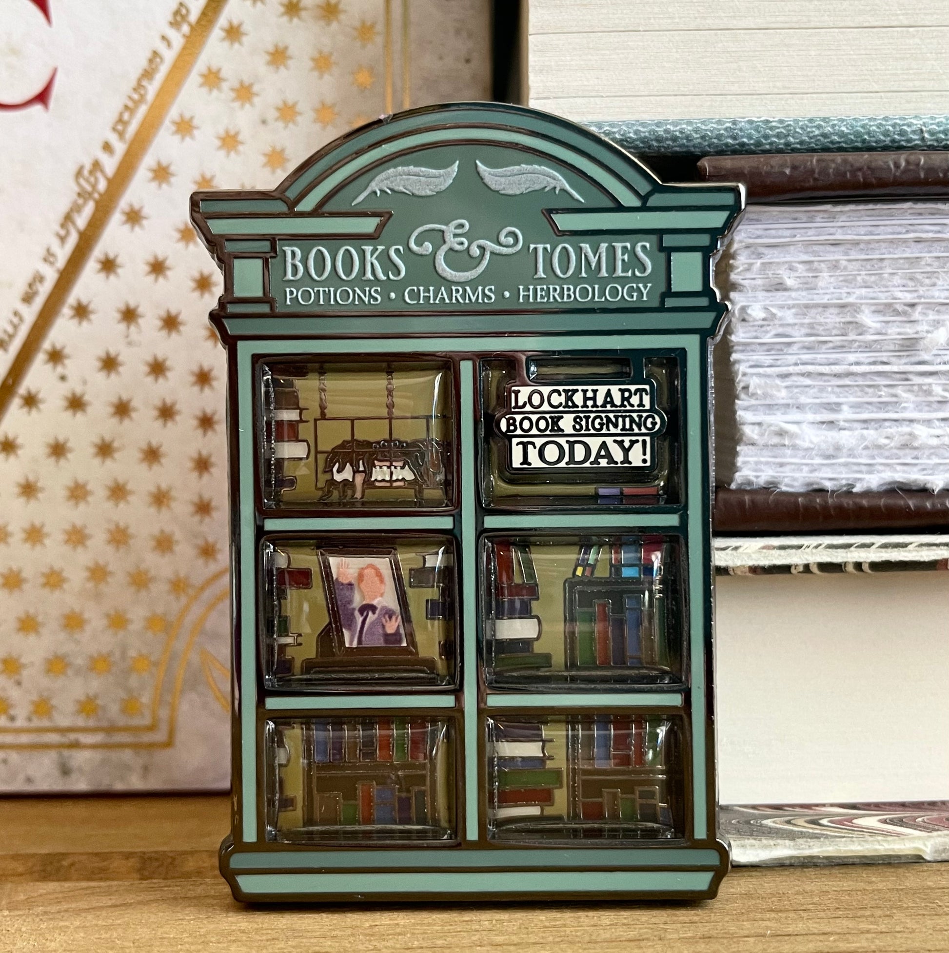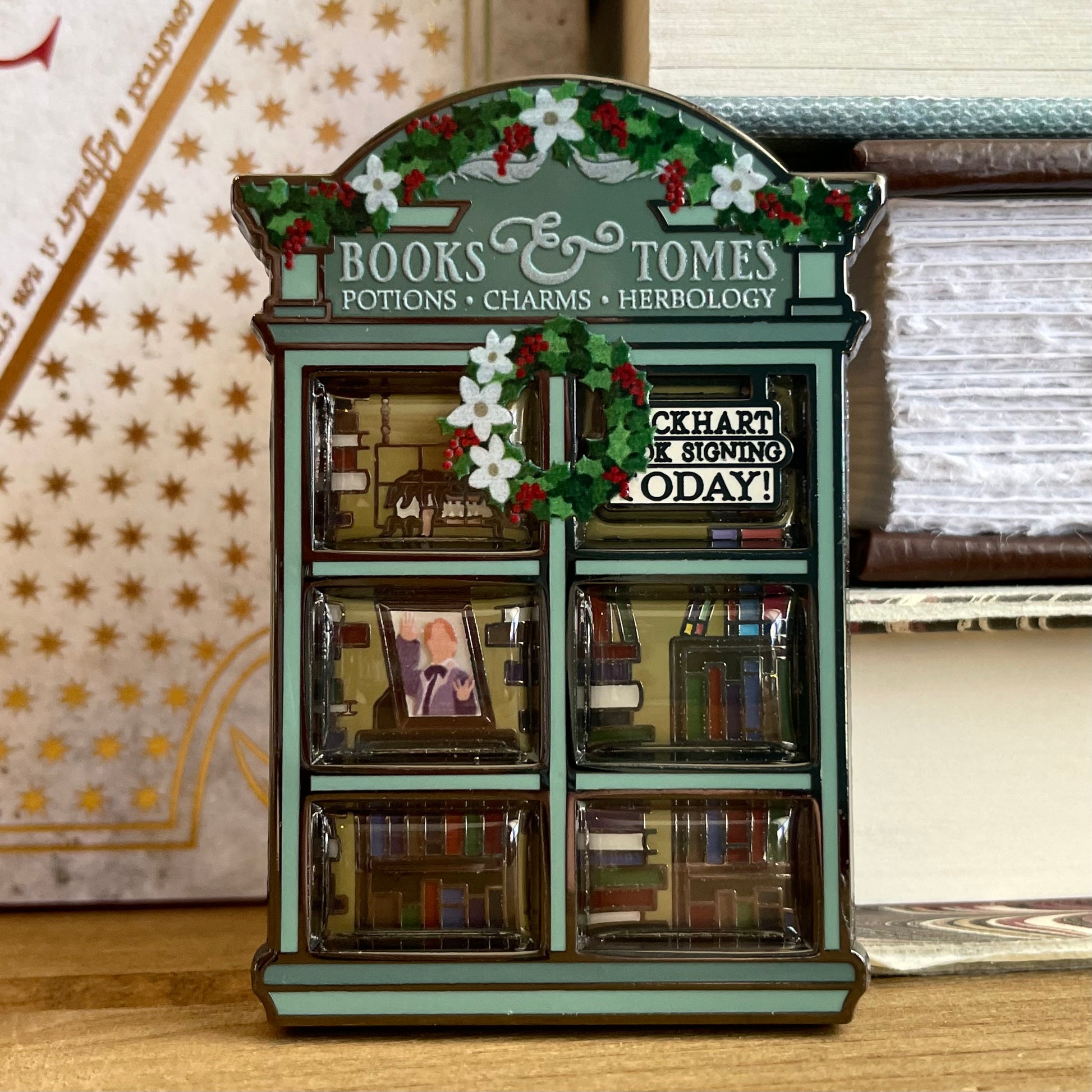 Stop by this shop for all of your textbook and tome needs. These double layer pins feature clear enamel so that you truly are looking through a tiny window! Double pin posts will keep this pin exactly where you want it on your board or outfit.