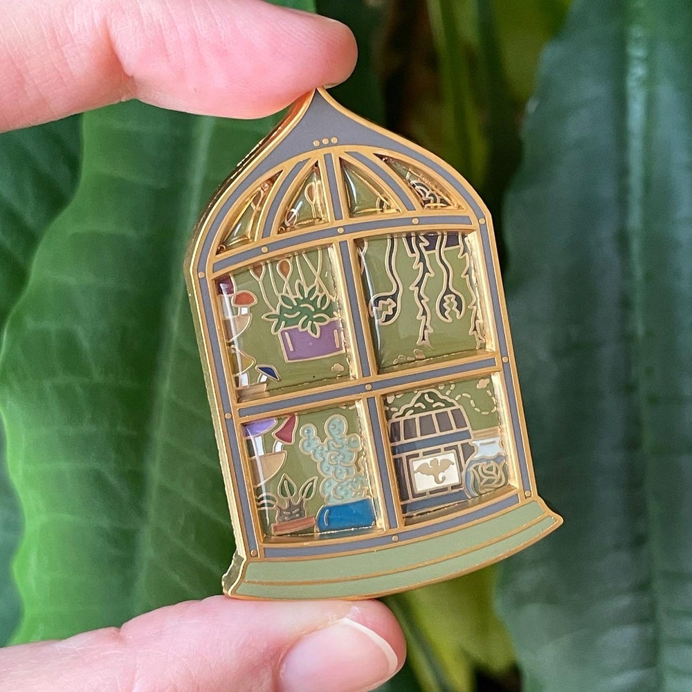 This is the shop for all of your botanical needs! From mandrake sprouts to dragon dung! These double layer pins feature clear enamel so that you truly are looking through a tiny window! Double pin posts will keep this pin exactly we’re you want it on your board or outfit.