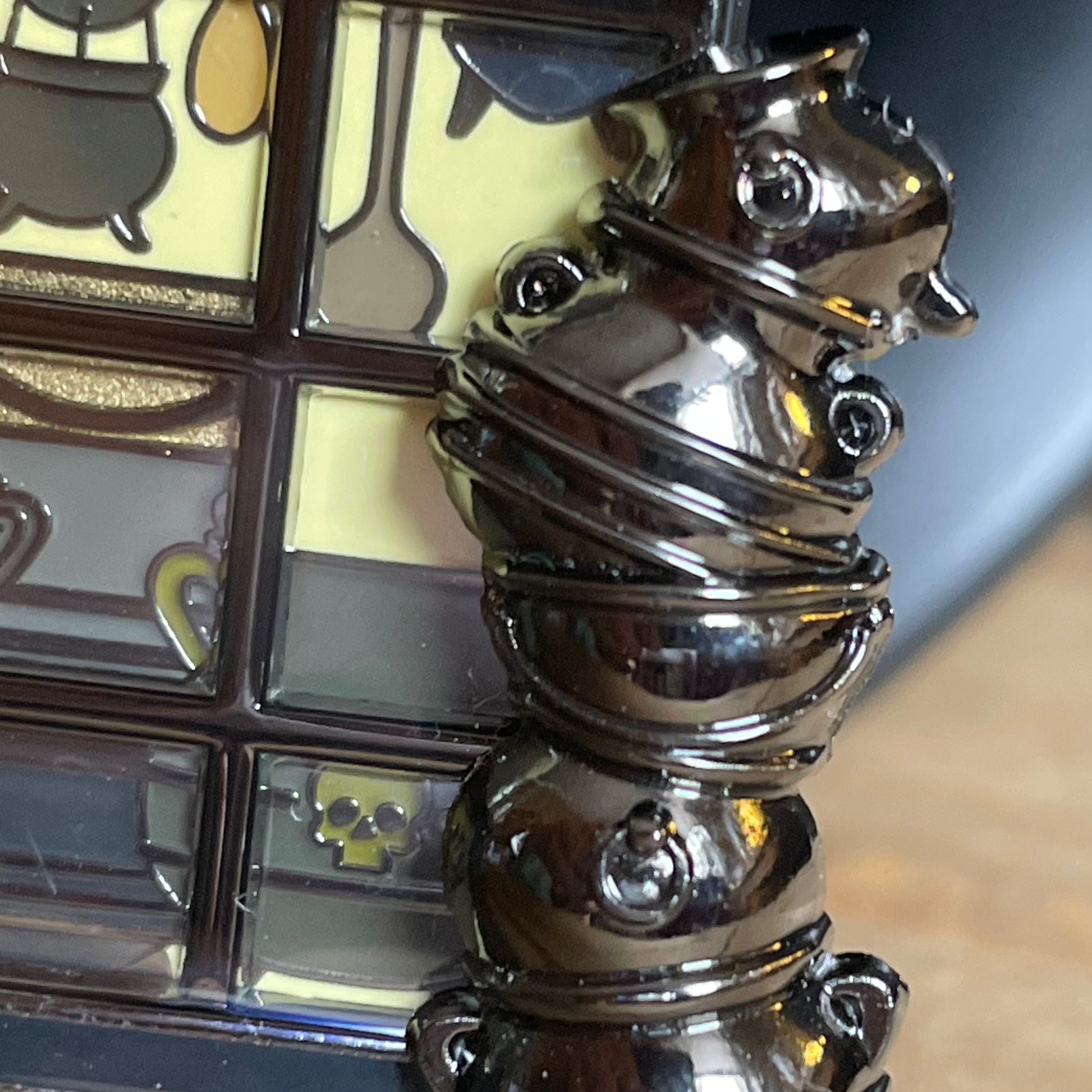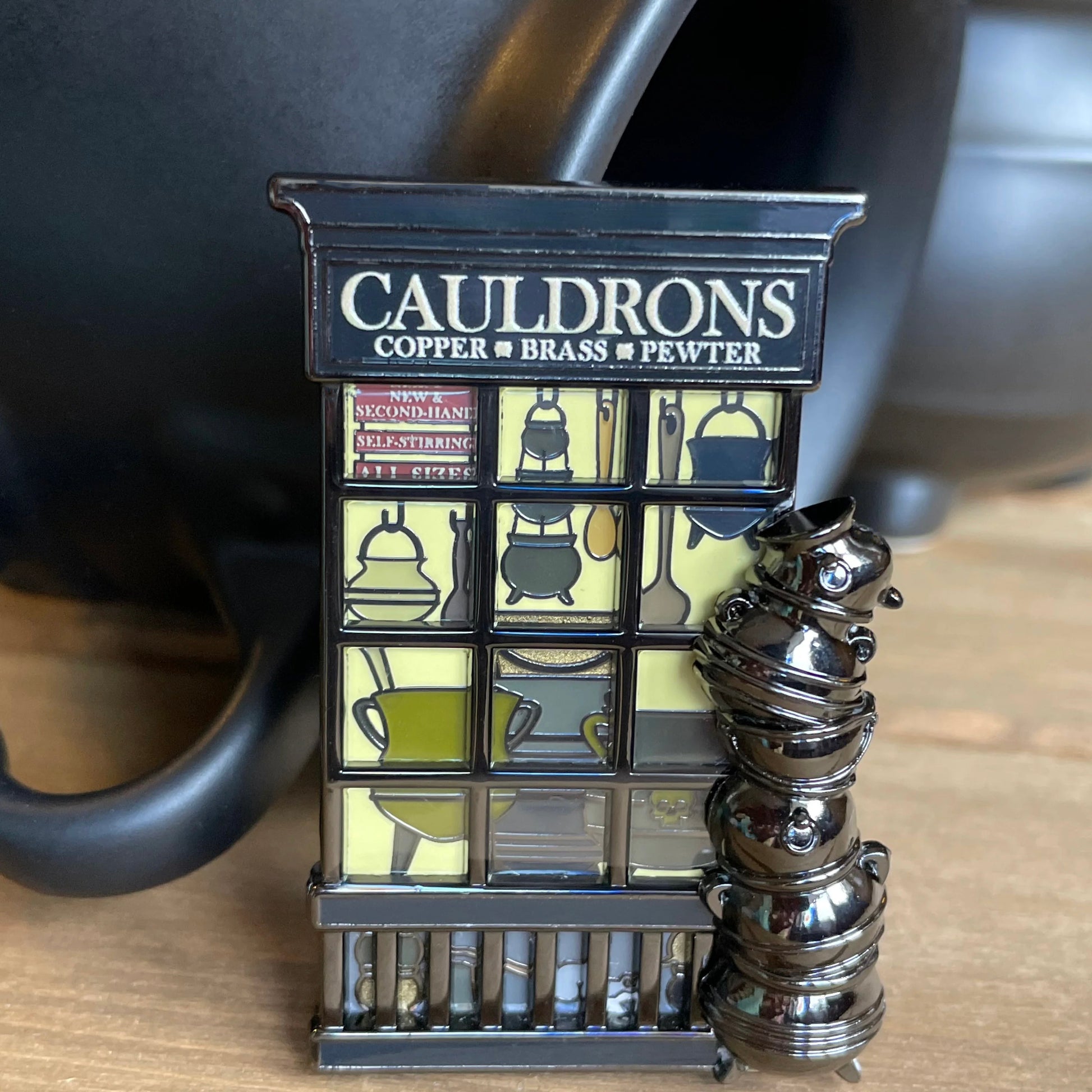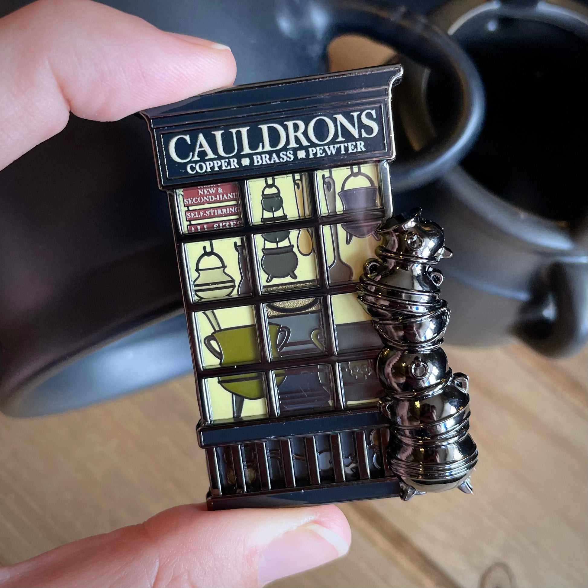 Stop by this shop for all of your cauldron needs. Are you looking for brass? Pewter? Self-stirring? You can find it all here. These triple layer pins feature clear enamel so that you truly are looking through a tiny window, AND a 3D pile of cauldrons. Double pin posts will keep this pin exactly where you want it on your board or outfit.