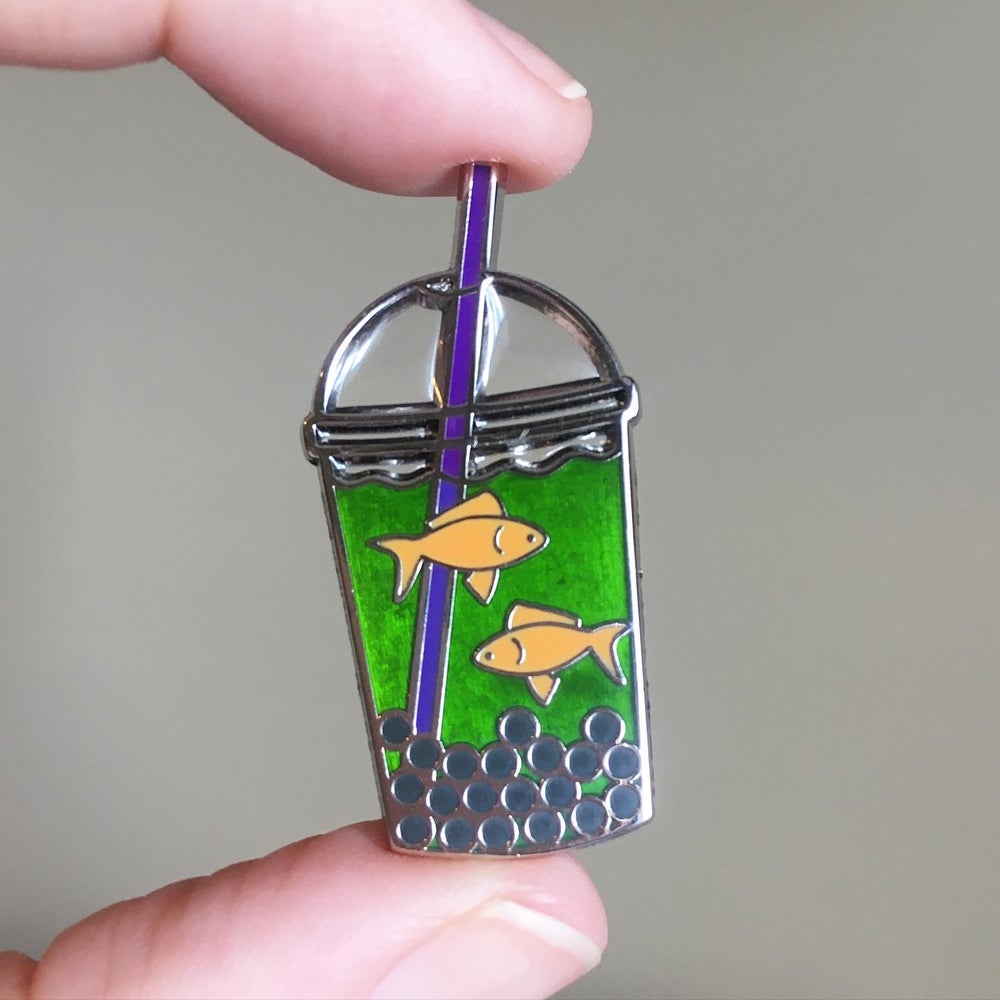 1.5" tall, transparent and hard enamel, and silver nickel plated