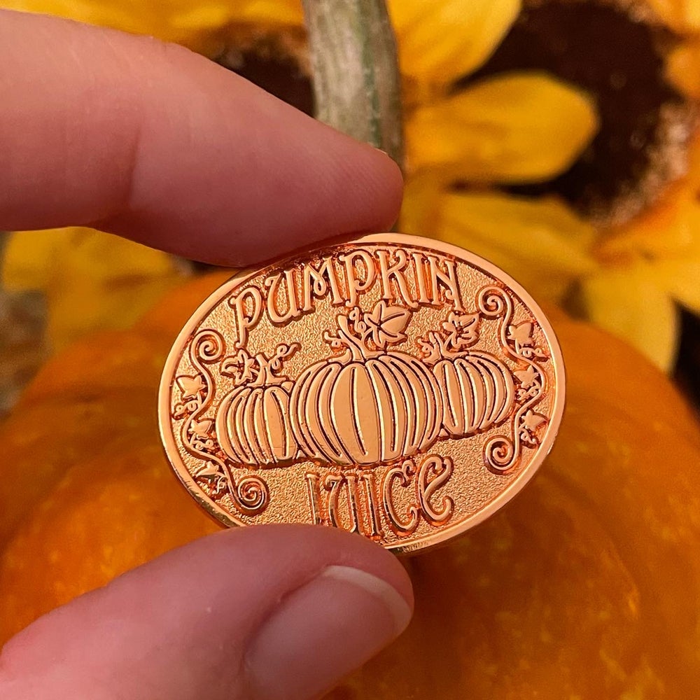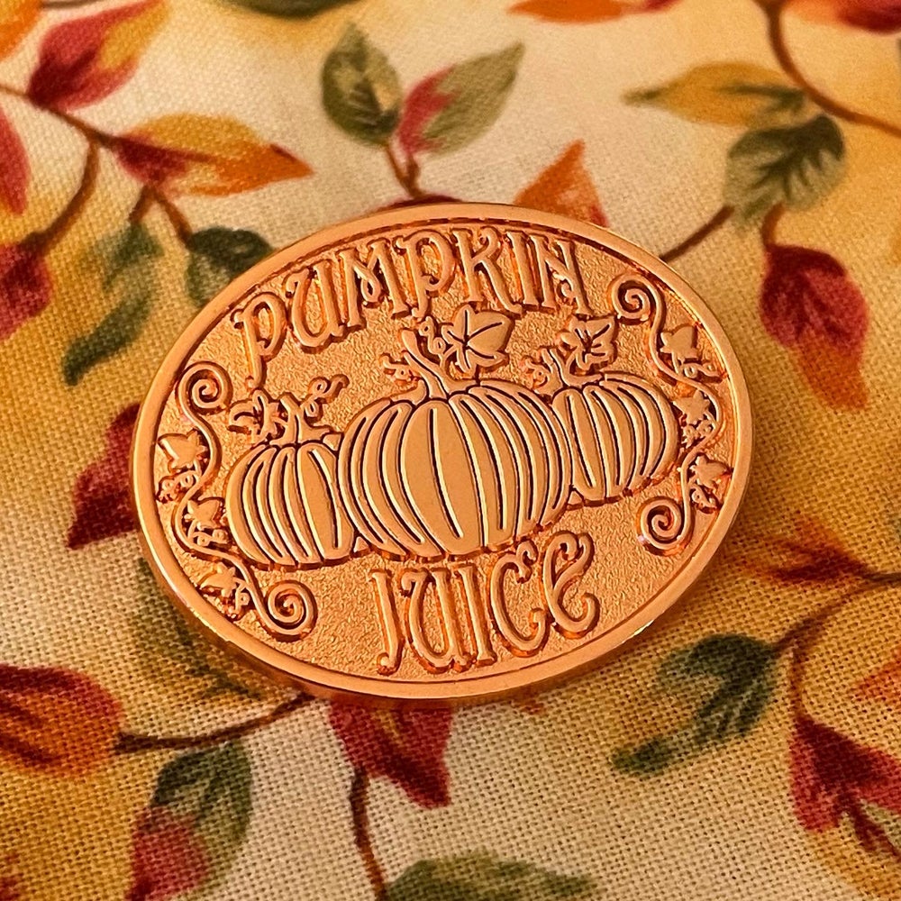 This pin features the artwork from our Pumpkin Juice mug! Truly one of the best magical treats!