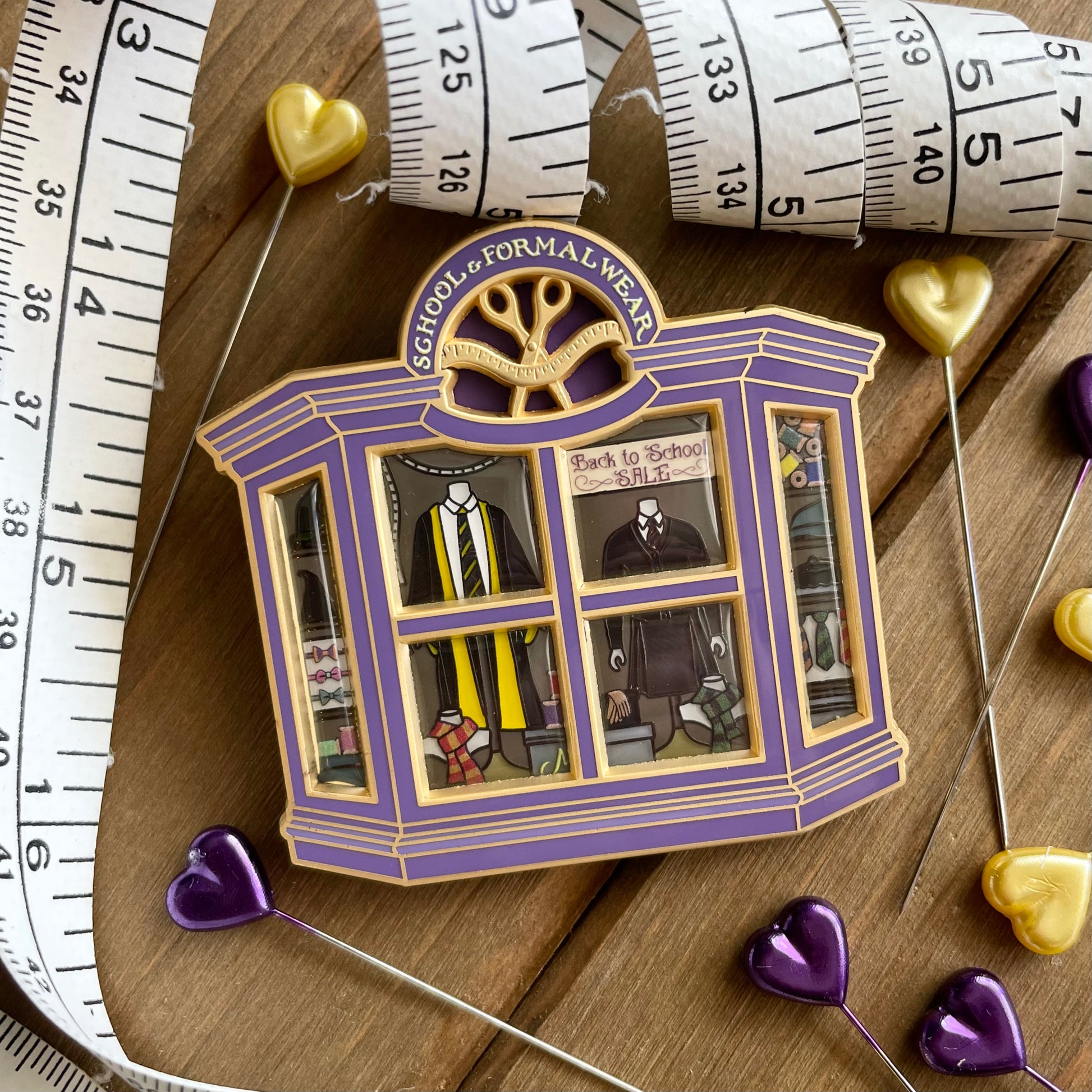 Stop by this shop for all of your school robes and formal wear. These double layer pins feature clear enamel so that you truly are looking through a tiny window! Double pin posts will keep this pin exactly where you want it on your board or outfit.