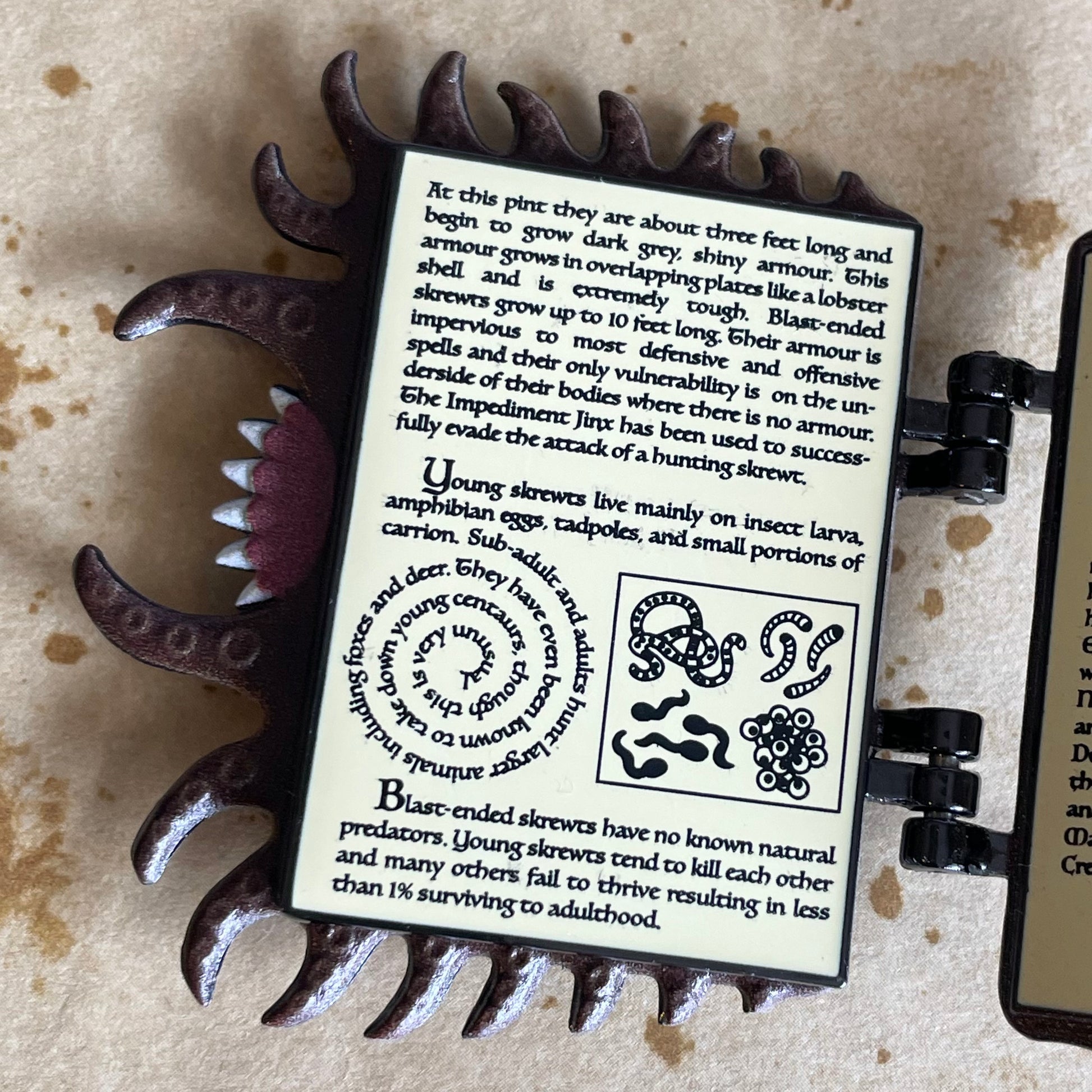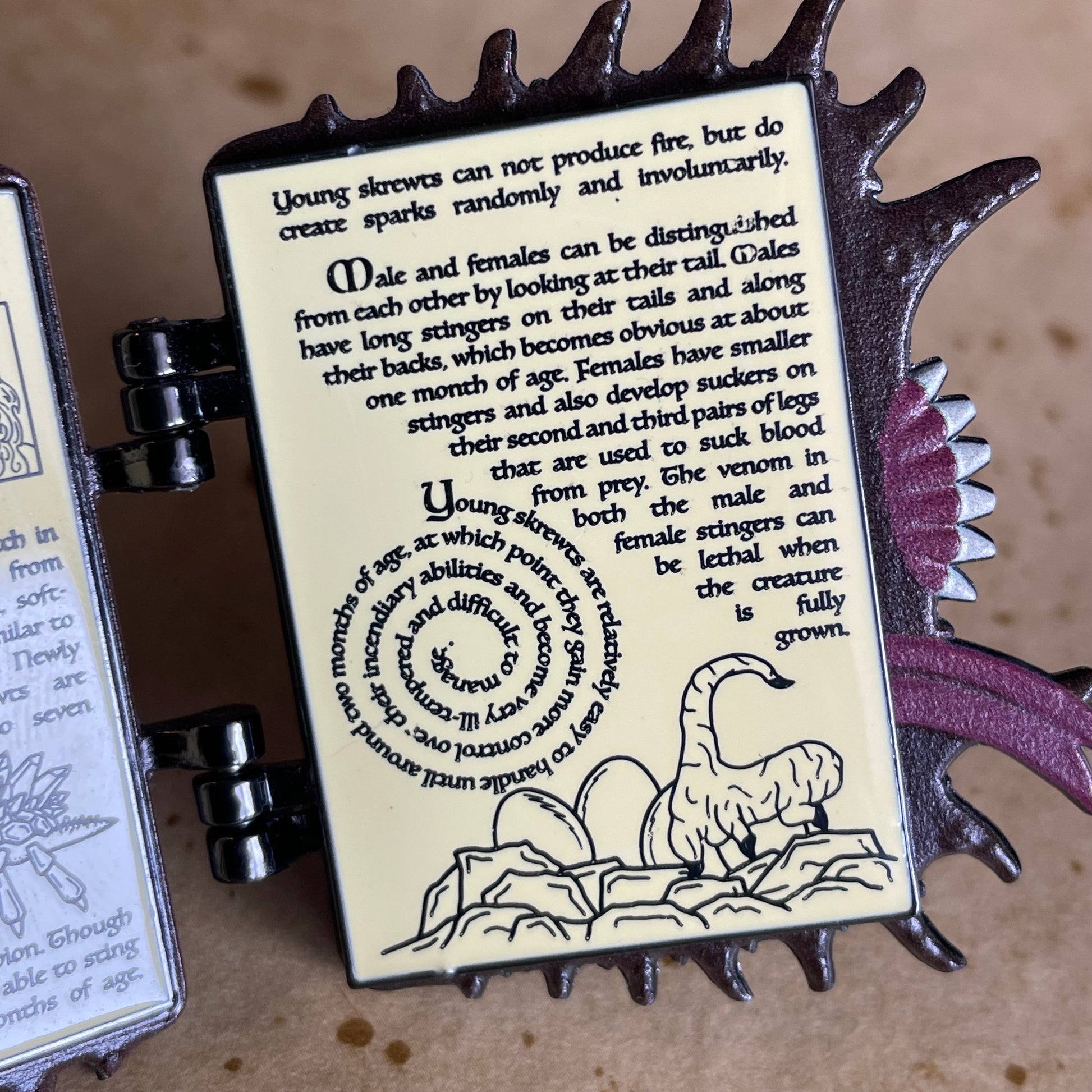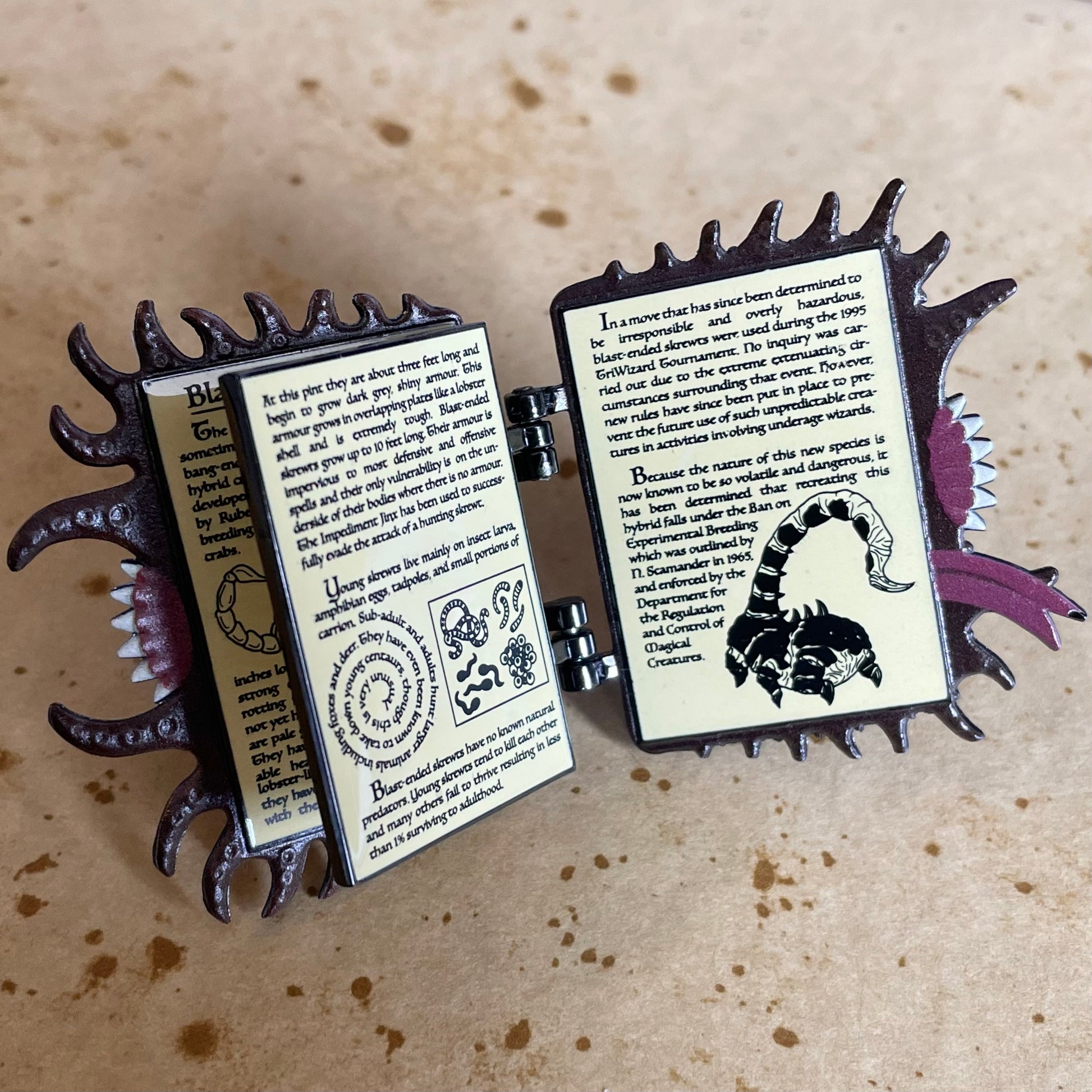 This three layer pin features 3D moulding on the front and back "covers" as well as fully readable pages about a certain very misunderstood critter!
