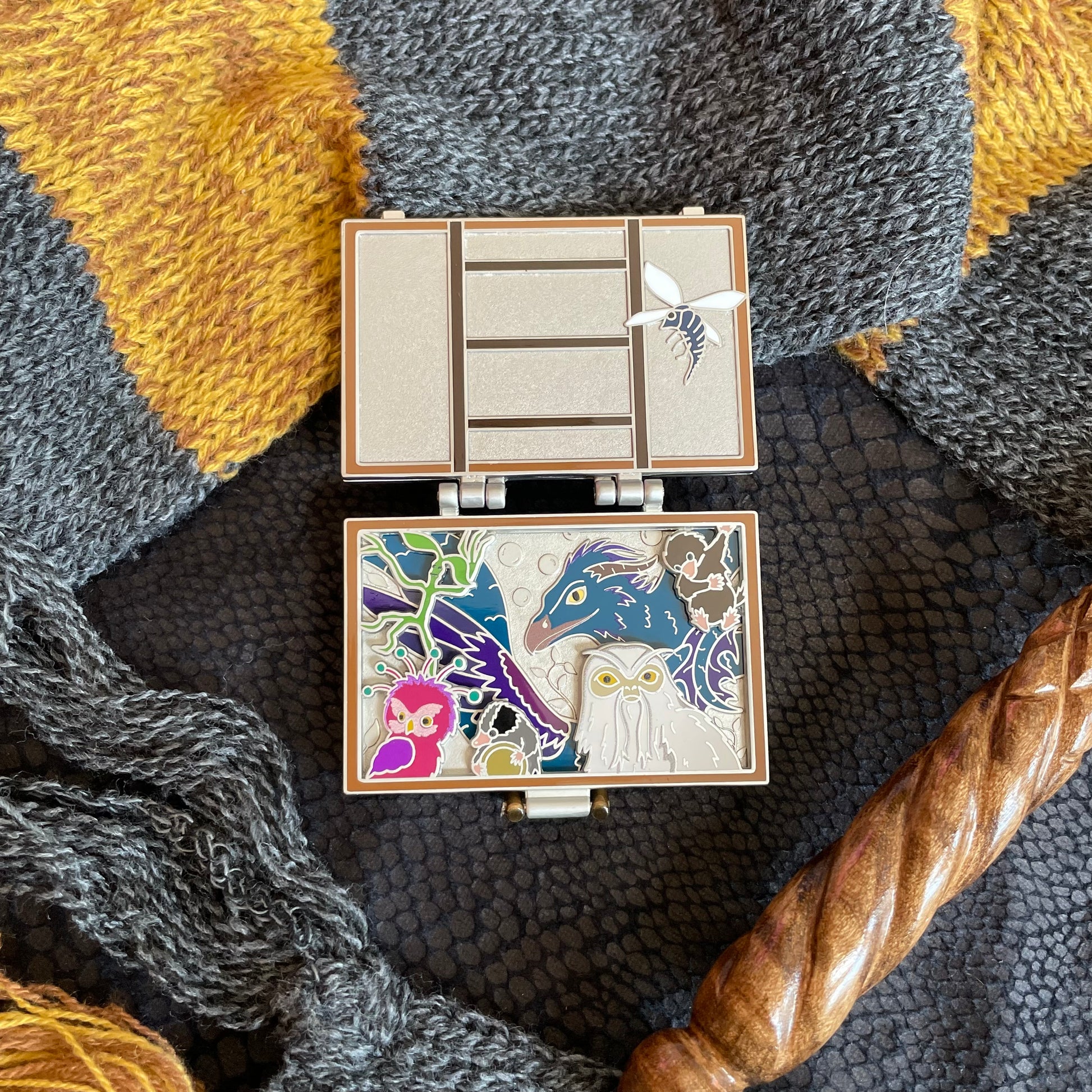 Open this four layer pin opens to reveal your normal luggage and then your secret menagerie! Perfect for everyone who studies magical beasts!