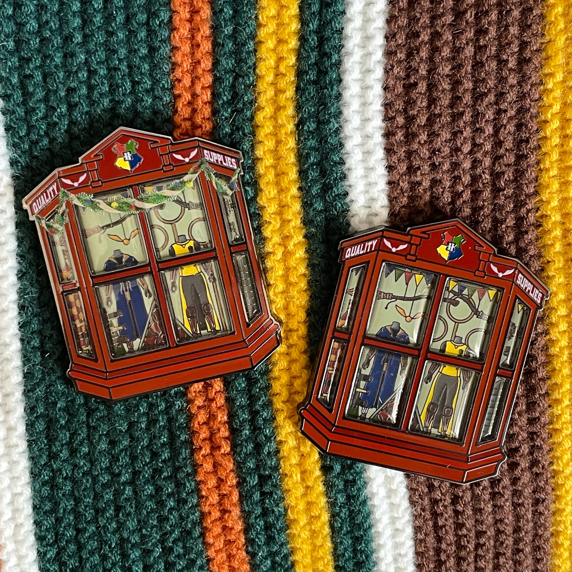 These double layer pins feature clear enamel so that you truly are looking through a tiny window! Double pin posts will keep this pin exactly we’re you want it on your board or outfit.
