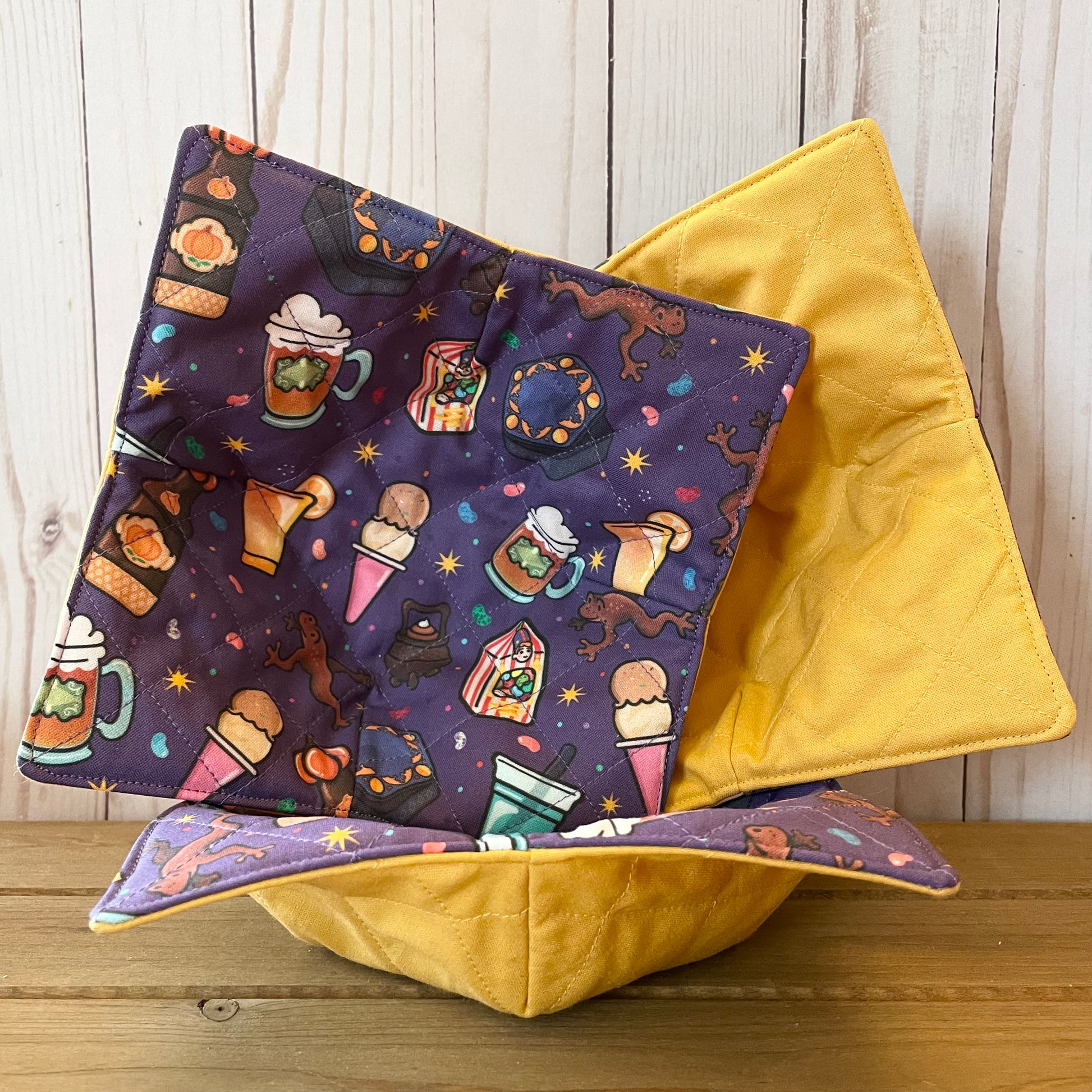 These reservable bowl cozies feature some of our favorite magical treats! Pairs perfectly with our new Hopping Chocolate Treat Crock!