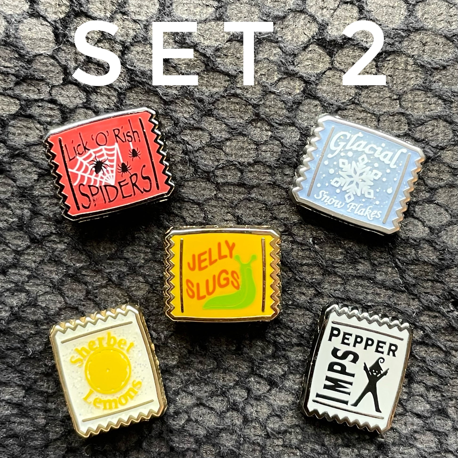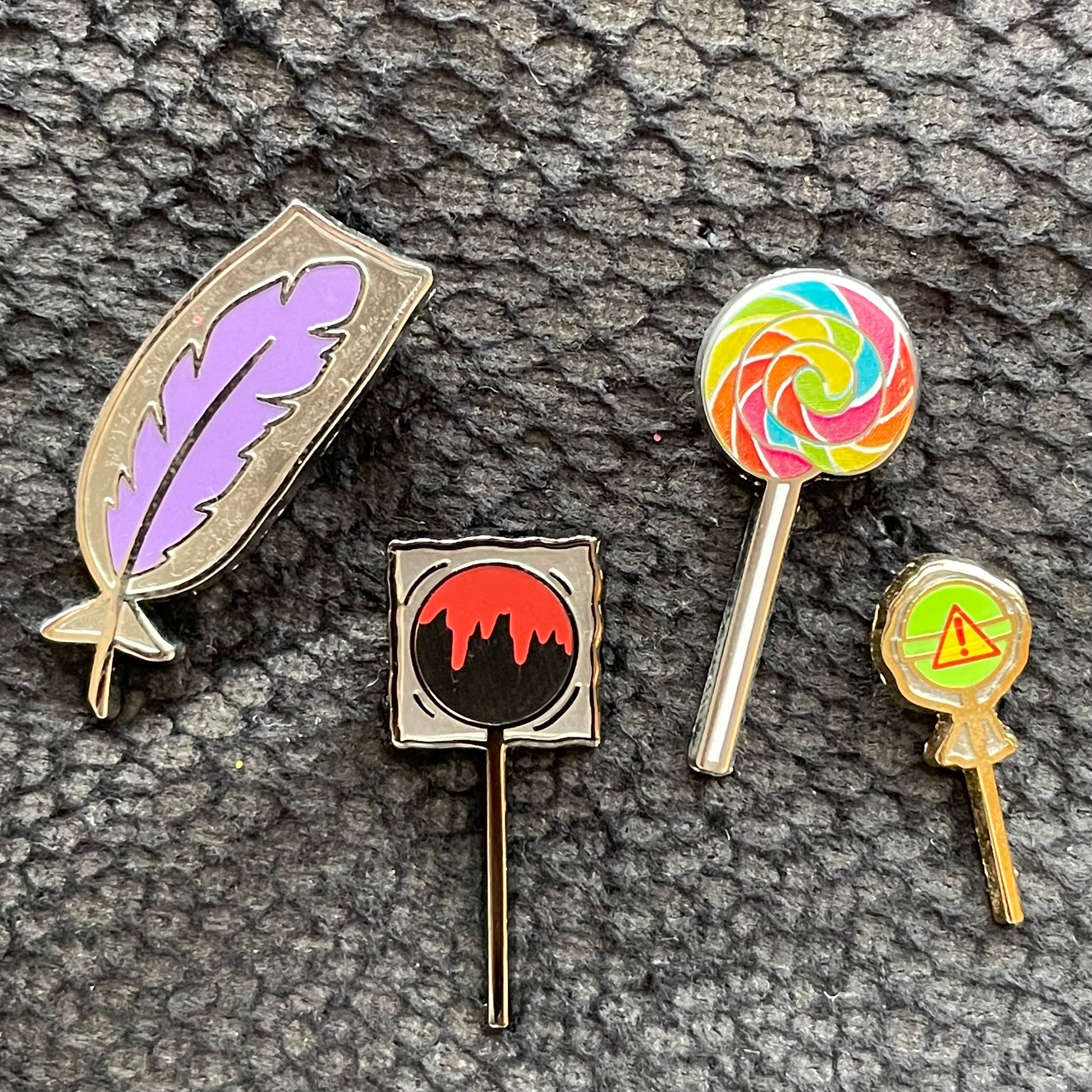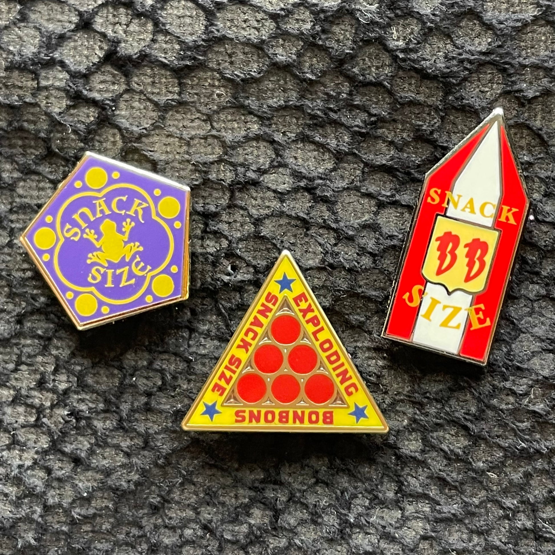 Mini pins range in size from 1/3 to 1 inch tall Main pin is 1 7/8 inch tall