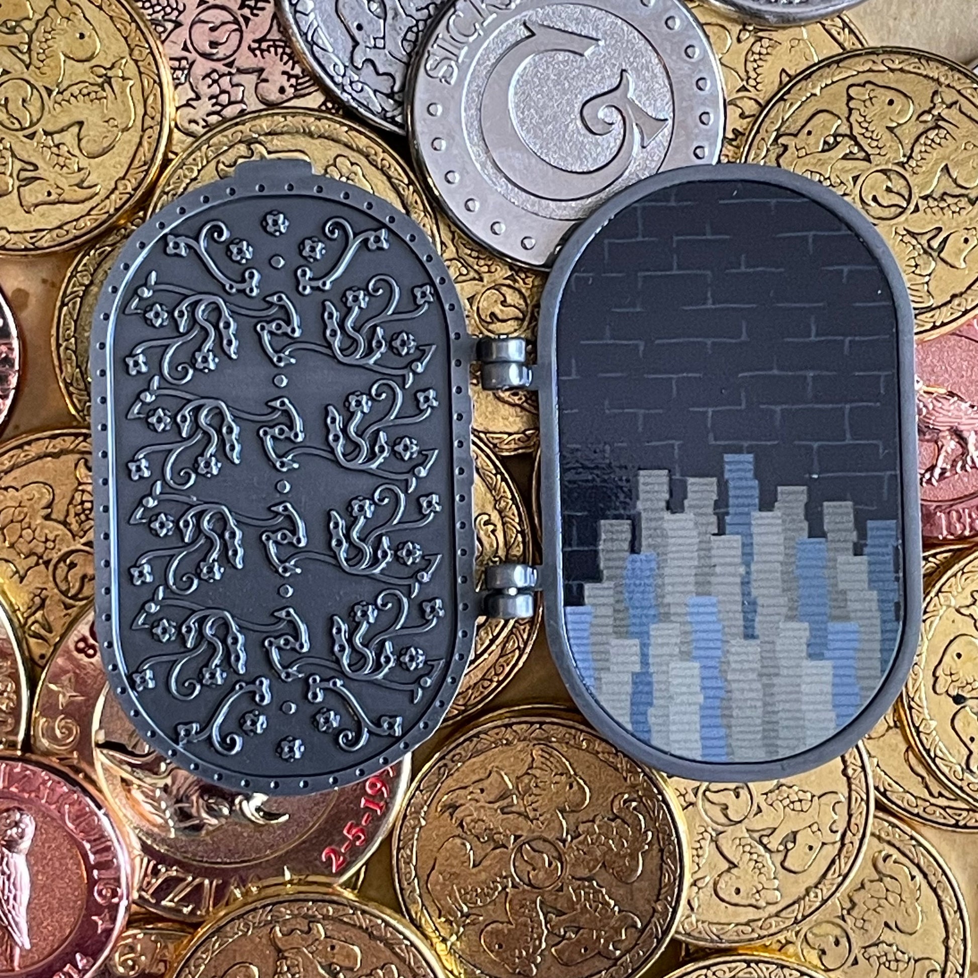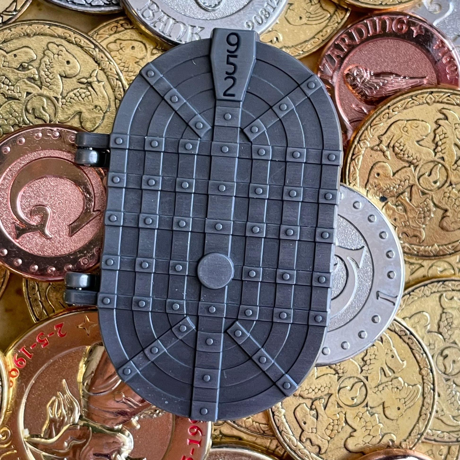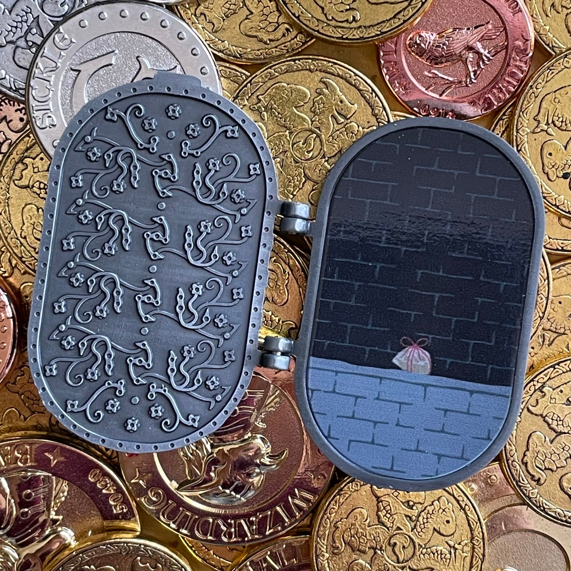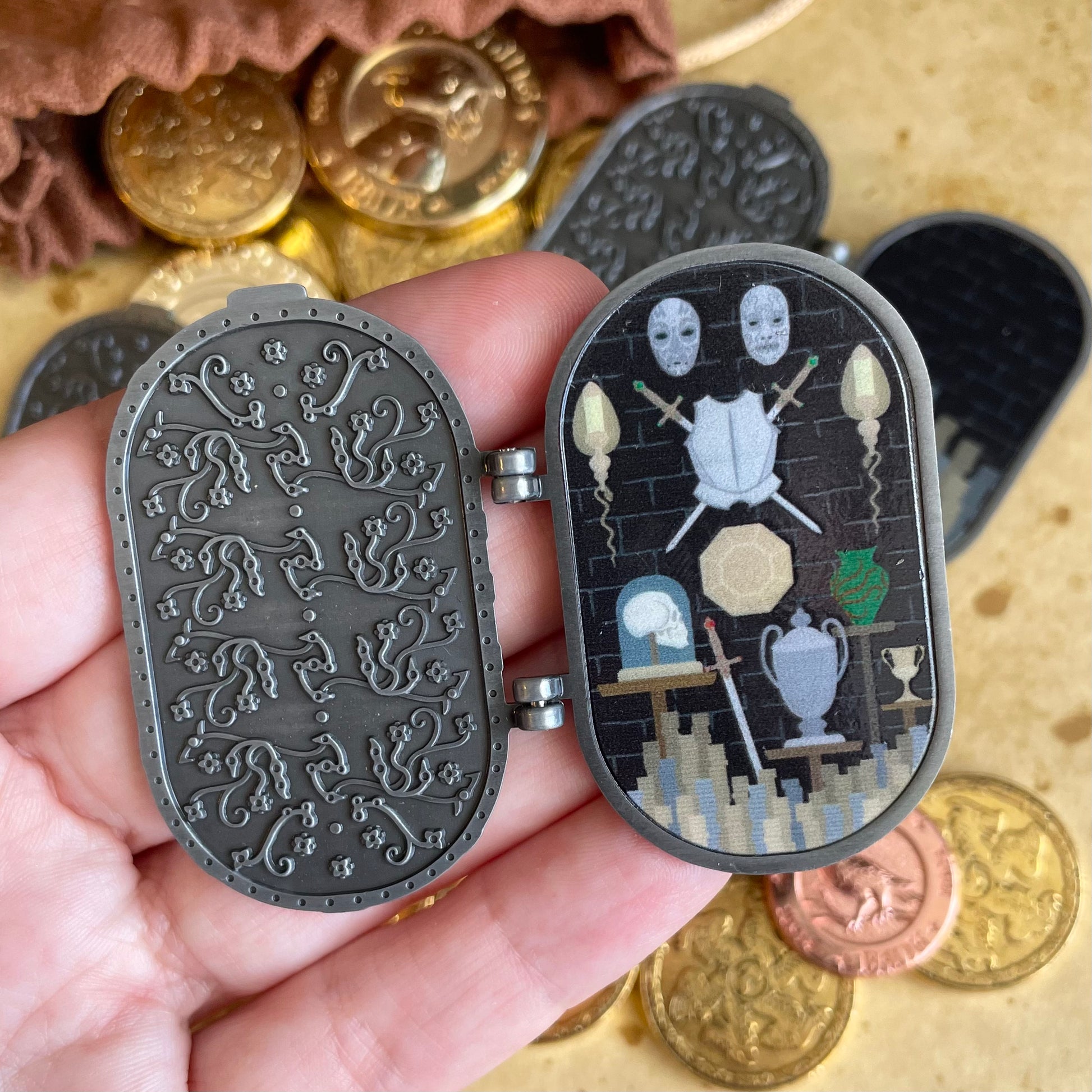 This hinged pin comes in three variations each featuring a famous magical vault!